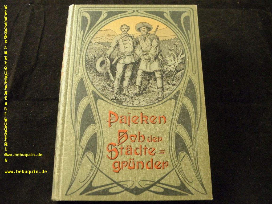 PAJEKEN, Friedrich J.: Bob der Städtegründer. Eine Erzählung aus dem Westen Nordamerikas. 6. Aufl. Leipzig (Hirt), (1911). 173 S. mit Abb. nach Zeichnungen von Johannes Gehrts und einem 16seitigen Werbeanhang. ill. OLn. gutes Ex. Klotz 5284/6.