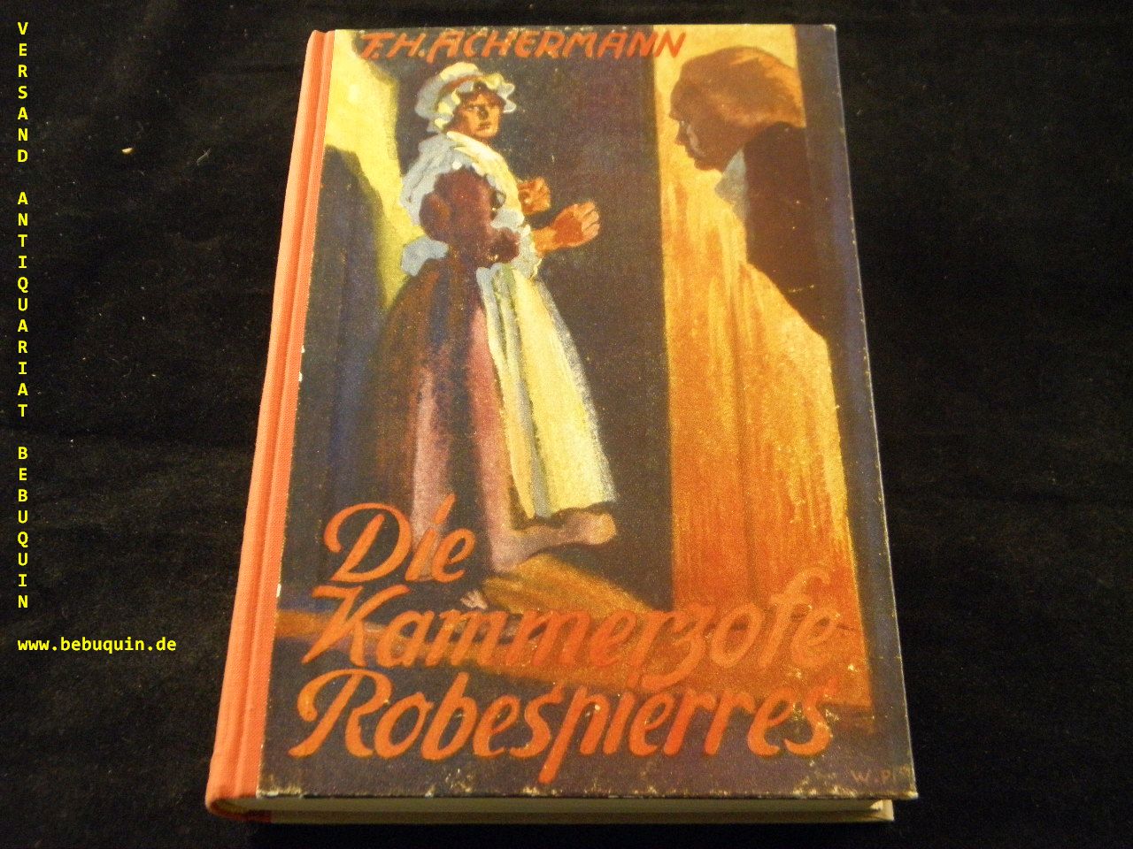 ACHERMANN, F.H.: Die Kammerzofe Robespierres. Historischer Roman aus der französischen Schrecksenzeit. 8.– 11. Tsd. Olten (Walter), 1930. 248 S. farb. ill. OHLn. von Willy Planck. feines Ex. Titel des als Schweizer Karl May bezeichneten Schriftstellers.