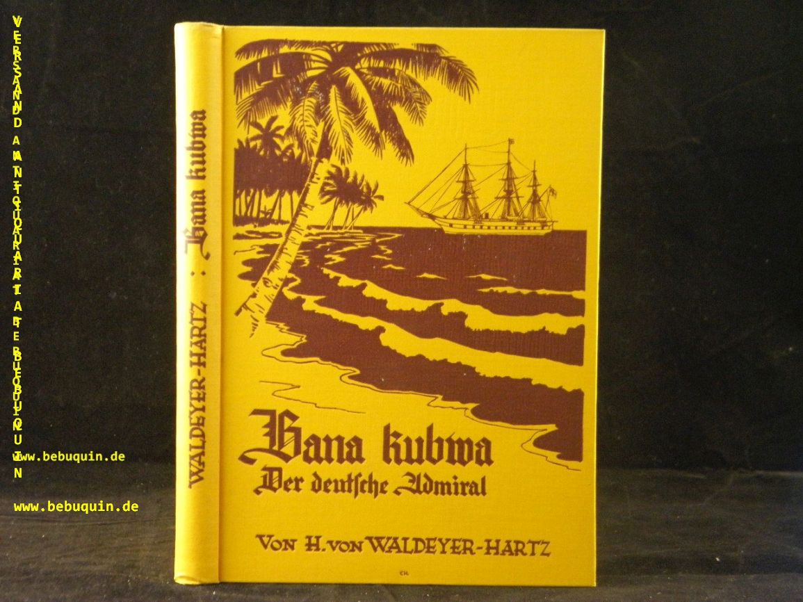 KOLONIEN.– WALDEYER-HARTZ, Hugo von: Bana Kubwa der deutsche Admiral. Eine Erzählung aus den Kämpfen um Deutsch-Ostafrikas Erwerbung. Stuttgart (Union), (1930). 200 (4) S. mit 22 Abb. + 1 Karte. ill. OLn. tadellos. EA Klotz 7869/1.