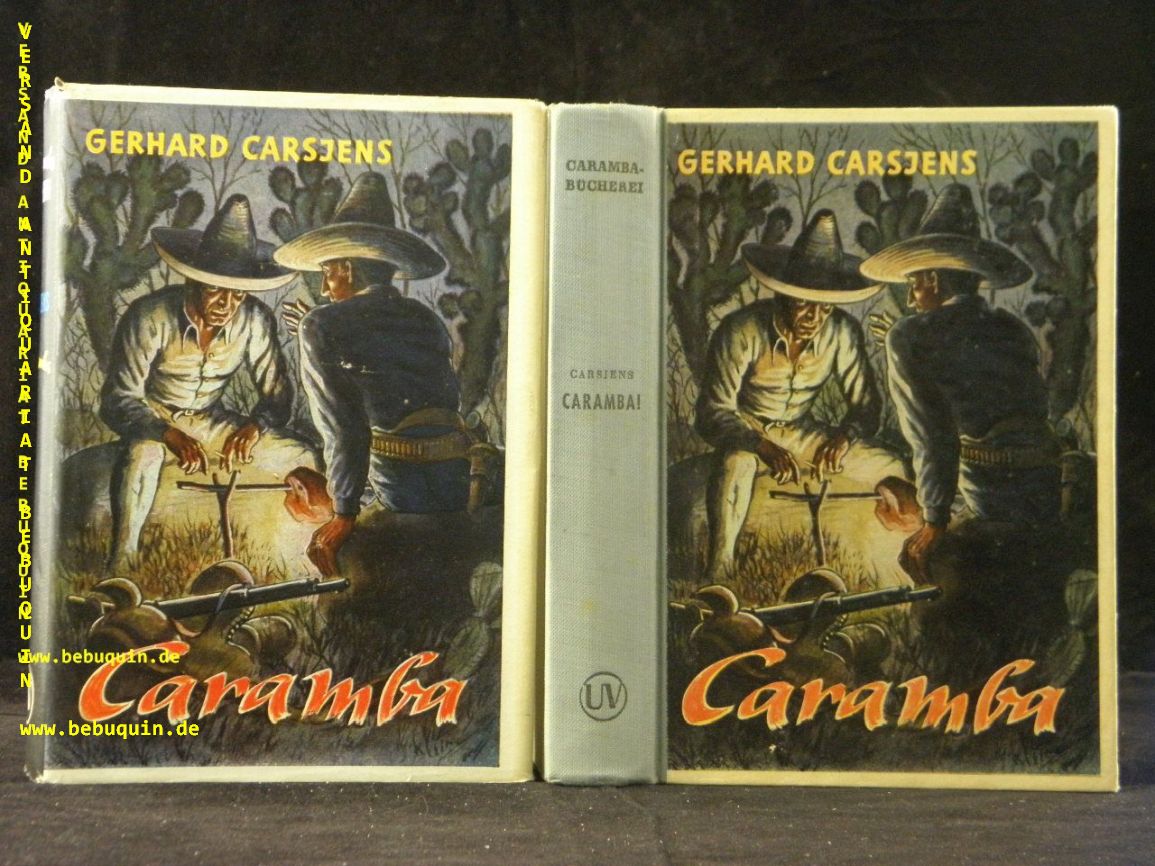 CARAMBA-BÜCHEREI.– CARSJENS, Gerhard: Caramba! Abenteuer-Roman aus dem Wilden westen (Mexiko). Sinzig (Uta), 1950. 287 (1) S. farb. ill. OHLn. mit OUmschl. gestempeltes Leihbuch. 1. Aufl. dieser Ausgabe.
