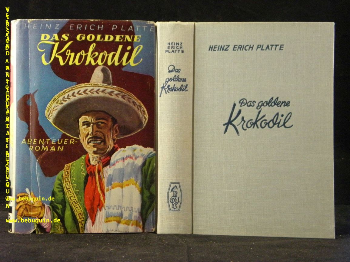PLATTE, Heinz Erich: Das goldene Krokodil. Abenteuerroman. Berlin (Uhlmann), 1936. 253 (3) S. OLn. mit OUmschl. Umschlag mit leichten Gebrauchsspuren, aber insgesamt gut erhalten. = Uhlmann – Bücher. EA.