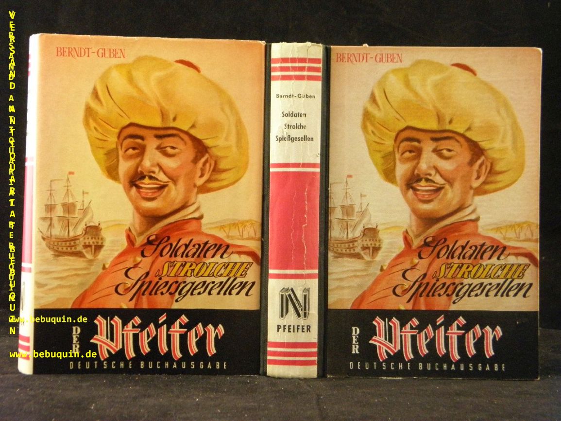BERNDT – GUBEN: Soldaten – Strolche – Spießgesellen. Frankfurt (Reihenbuch), 1952. 255 S. farb. ill. fol. OHLn mit OUmschl. fliegender Vorsatz fehlt, gestempeltes Leihbuch, sonst gutes Ex. = Der Pfeifer Deutsche Buchausgabe, Bd. 6. seltene EA.