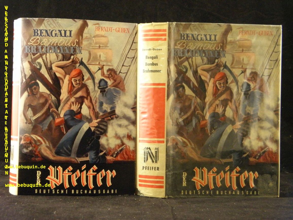 BERNDT – GUBEN: Bengali – Bambus – Brahmanen. Frankfurt (Reihenbuch), 1952. 256 S. farb. ill. fol. OHLn mit zwei OUmschlägen. fliegender Vorsatz fehlt, ein Umschlag mit Einband etwas verklebt, vorderes Gelenk gelockert, Inneneckel bekritzelt. = Der Pfeifer Deutsche Buchausgabe, Bd. 6. seltene EA.