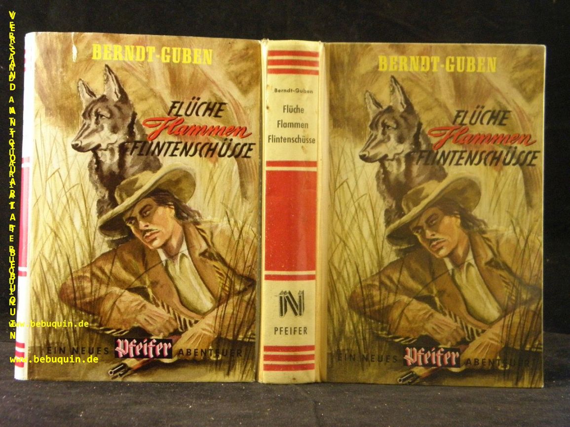 BERNDT – GUBEN: Flüche – Flammen – Flintenschüsse. Frankfurt (Reihenbuch), 1953. 255 S. farb. ill. OHLn mit OUmschl. auf hinterem Vorsatz Leiheintragungen, sonst sehr fein erhalten. = Der Pfeifer Deutsche Buchausgabe, Bd. 6. seltene EA.