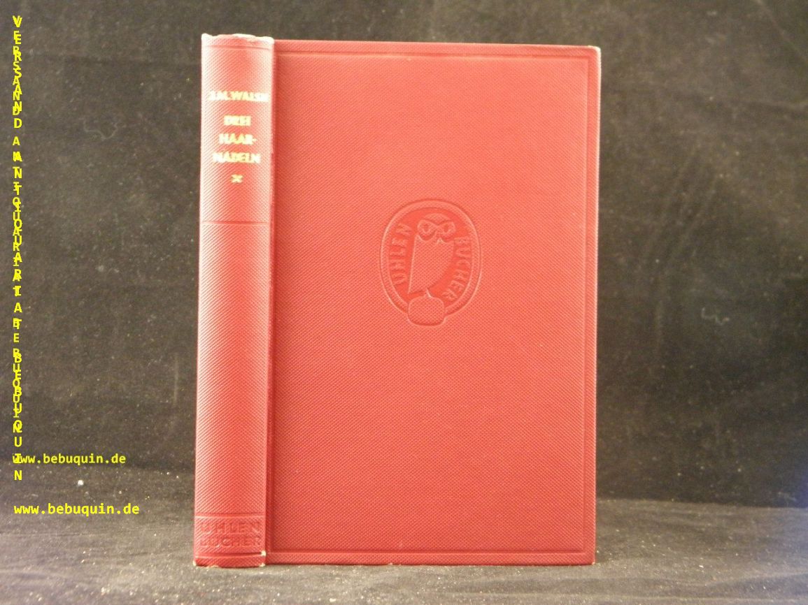 WALSH, J.M.: Drei Haarnadeln. Kriminalroman. D.v. Klaus Thomas. Berlin (Deutscher), 1938. kl. 8°. 243 (3) S. OLn. NaV, NaT, schönes Ex. = Uhlen-Bücher 102. dt. EA. Schädel 8091.