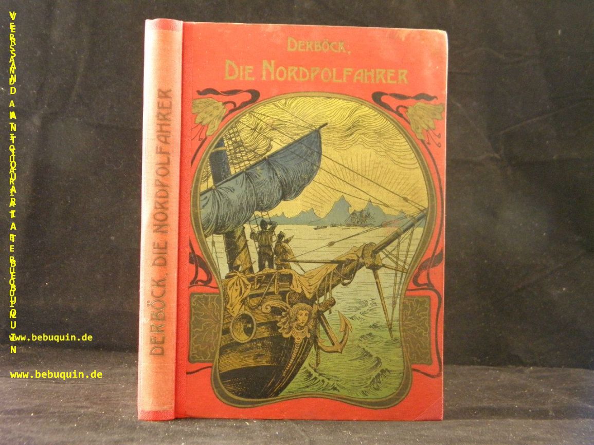 BOECK, Carl von der: (d.i. C.V. Derboeck) Die Nordpol-Fahrer. Nordenskjöld’s und seiner Gefährten Erlebnisse im ewigen Eise. 14. Aufl. Berlin (Drewitz), (1899). Gr. 8°. 3 Bl., 216 (2) S. mit 5 Farbendruck-Illustrationen von Gustav Annemüller und einer Karte. farb. ill. OLn. alter Rücken neu aufgezogen, Vorsätze erneuert, insgesamt feines Ex. Klotz 1019/7.