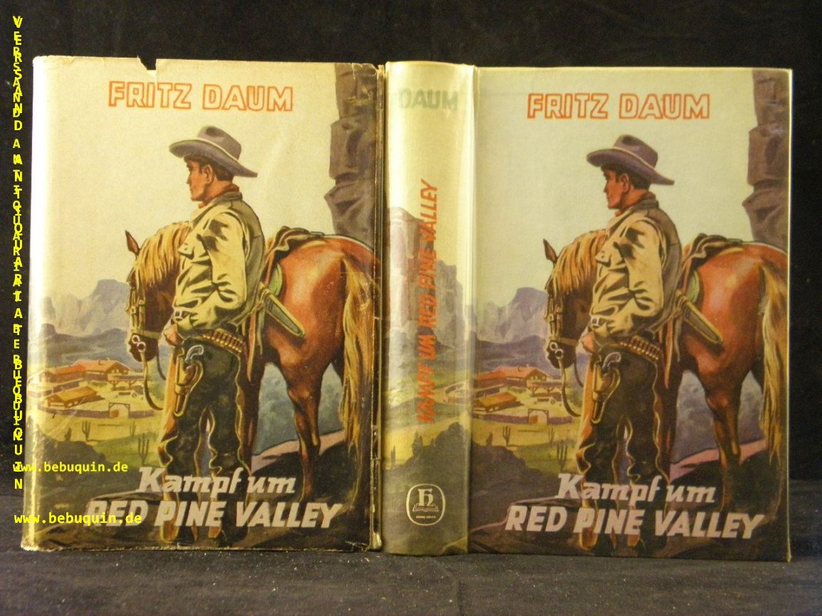 DAUM, Fritz: Kampf um Red Pine Valley. Wildwest-Roman. Balve (Hönne), (1958). 254 S. farb. ill. OPb mit OUmschl. leicht bebräunt. 1. Aufl. dieser Ausgabe. Schegk / Wimmer S2.