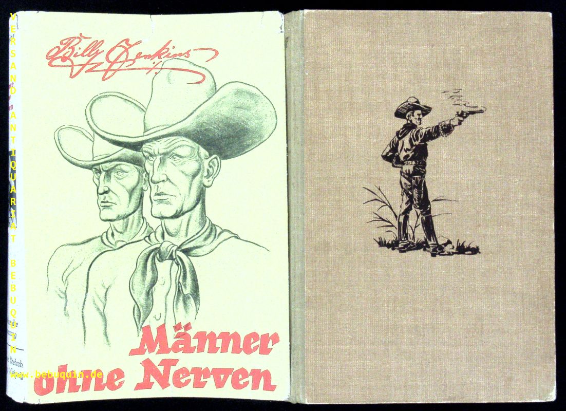 BILLY JENKINS.– 028 / KEMPP, Hannes: Männer ohne Nerven. Leipzig (Dietsch), 1937. 288 S. ill. OHLn. mit OUmschl. Umschlagkopie auf Vorsatz geklebt, sonst gutes Ex. = Bücher der Spannung 28. sehr seltene EA mit dem absolut raren Original Umschlag.