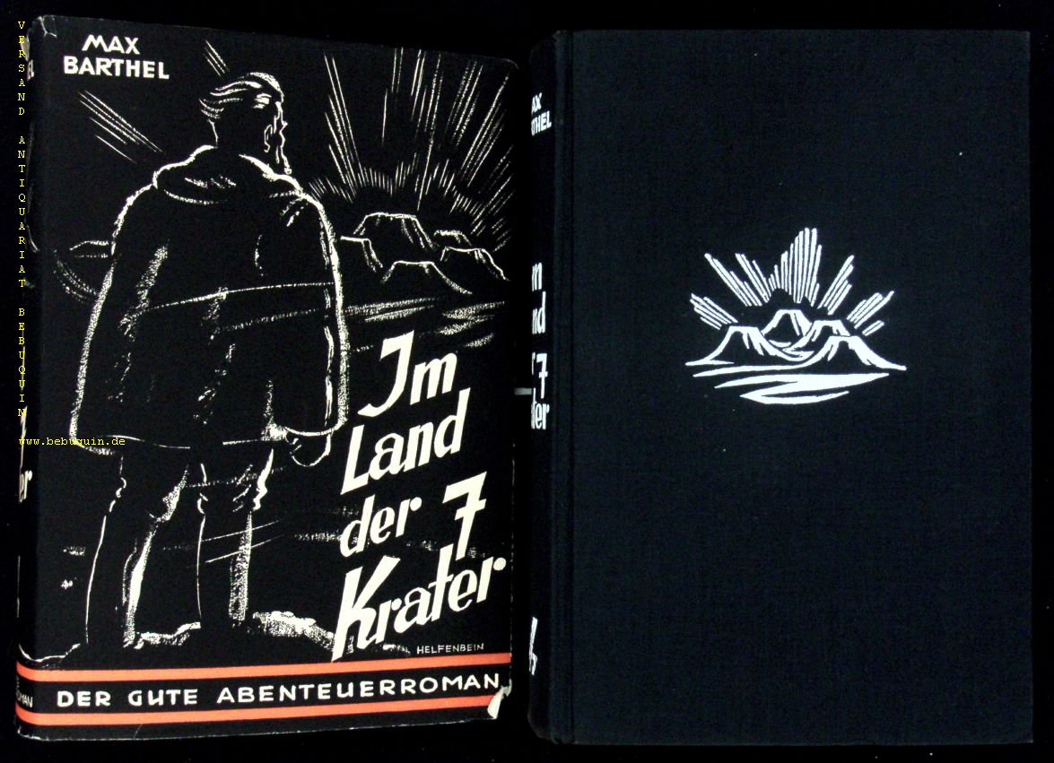 BARTHEL, Max: Im Land der 7 Krater. Abenteuerroman. Niedersedlitz (Sa.) (Vaterhaus), 1937. 303 S. ill. OLn mit OUmschl. gutes Ex. sehr seltene EA. nicht bei WG².
