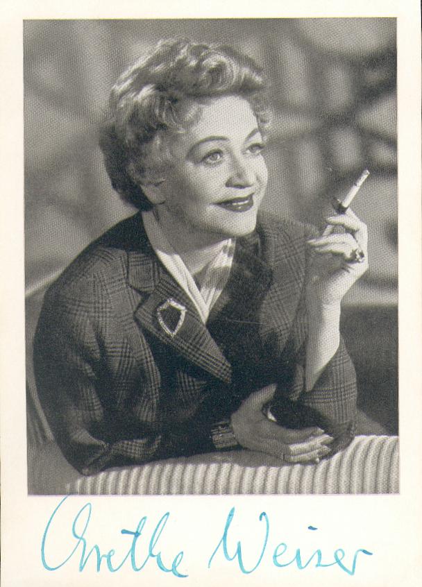 WEISER, Grethe: eigenhändige Unterschrift auf Portrait-AK. o.O., ca 1950. S/W.
