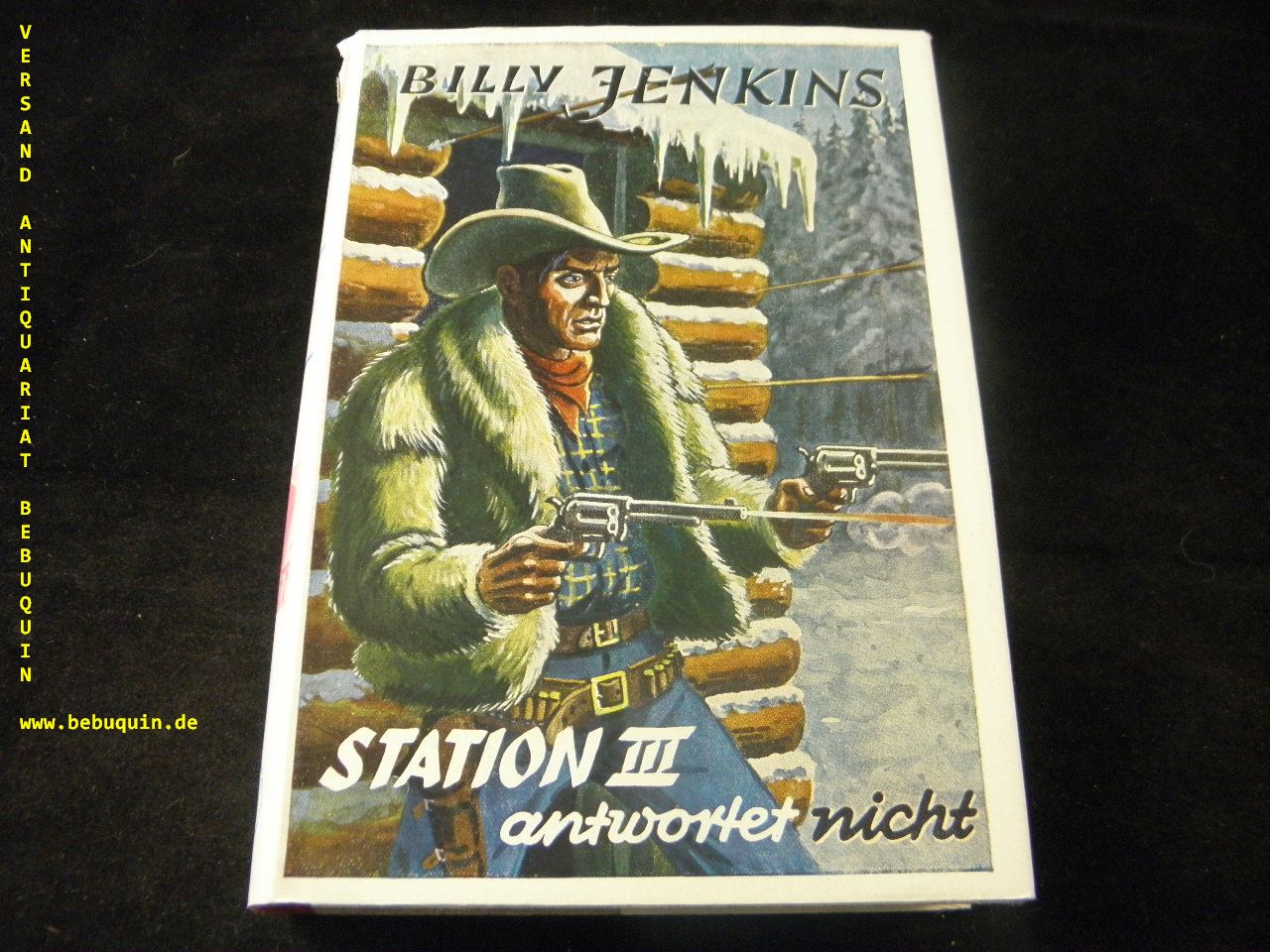 BILLY JENKINS.– RANDALL, Rolf: (d.i. Joachim Rennau) Station III antwortet nicht. Essen (Uta), 1950. 272 S. farb. ill. OHLn. mit OUmschl. schönes Ex. = Billy Jenkins Wild – West – Erzählungen, Bd. 15. 1. Aufl. dieser Ausgabe.
