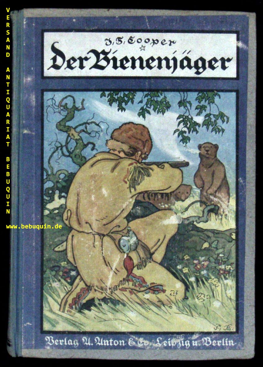 BAUMGARTEN.– COOPER, J.F.: Der Bienenjäger. Eine Erzählung aus dem wilden Westen. Leipzig (Anton & Co), (1922). 160 S. mit 4 Farbtafeln von Fritz Baumgarten. farb. ill. OHLn. NaV. 1. Ausgabe mit den Ilustrationen. Blaume 460 erwähnt lediglich 3 Farbtafeln.