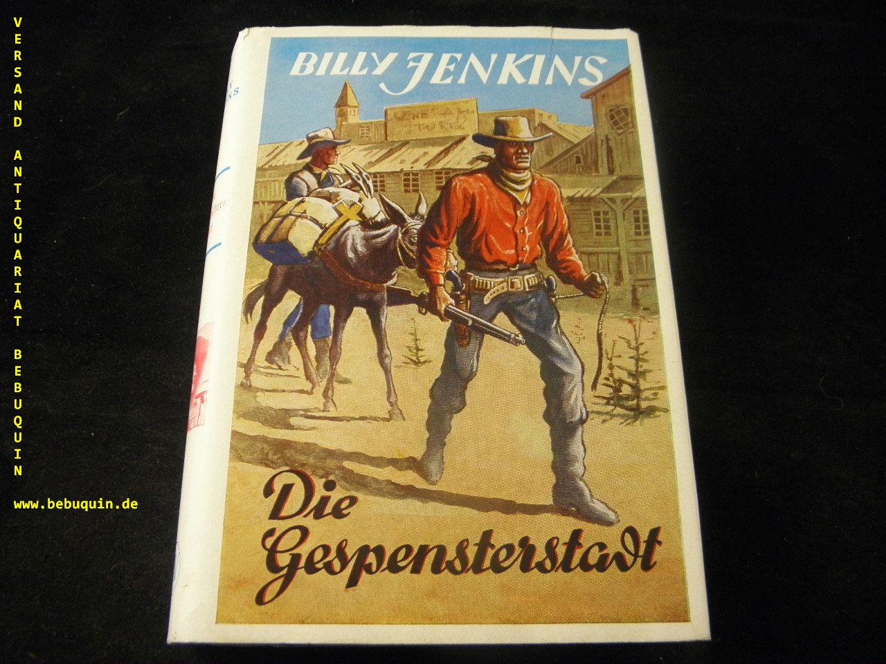 BILLY JENKINS.– MALY, Anton: Die Gespensterstadt. Sinzig (Uta), 1951. 256 S. farb. ill. OHLn. mit OUmschl. fliegender Vorsatz fehlt. = Billy Jenkins Wild – West – Erzählungen, Bd. 42. 1. Aufl. dieser Ausgabe.