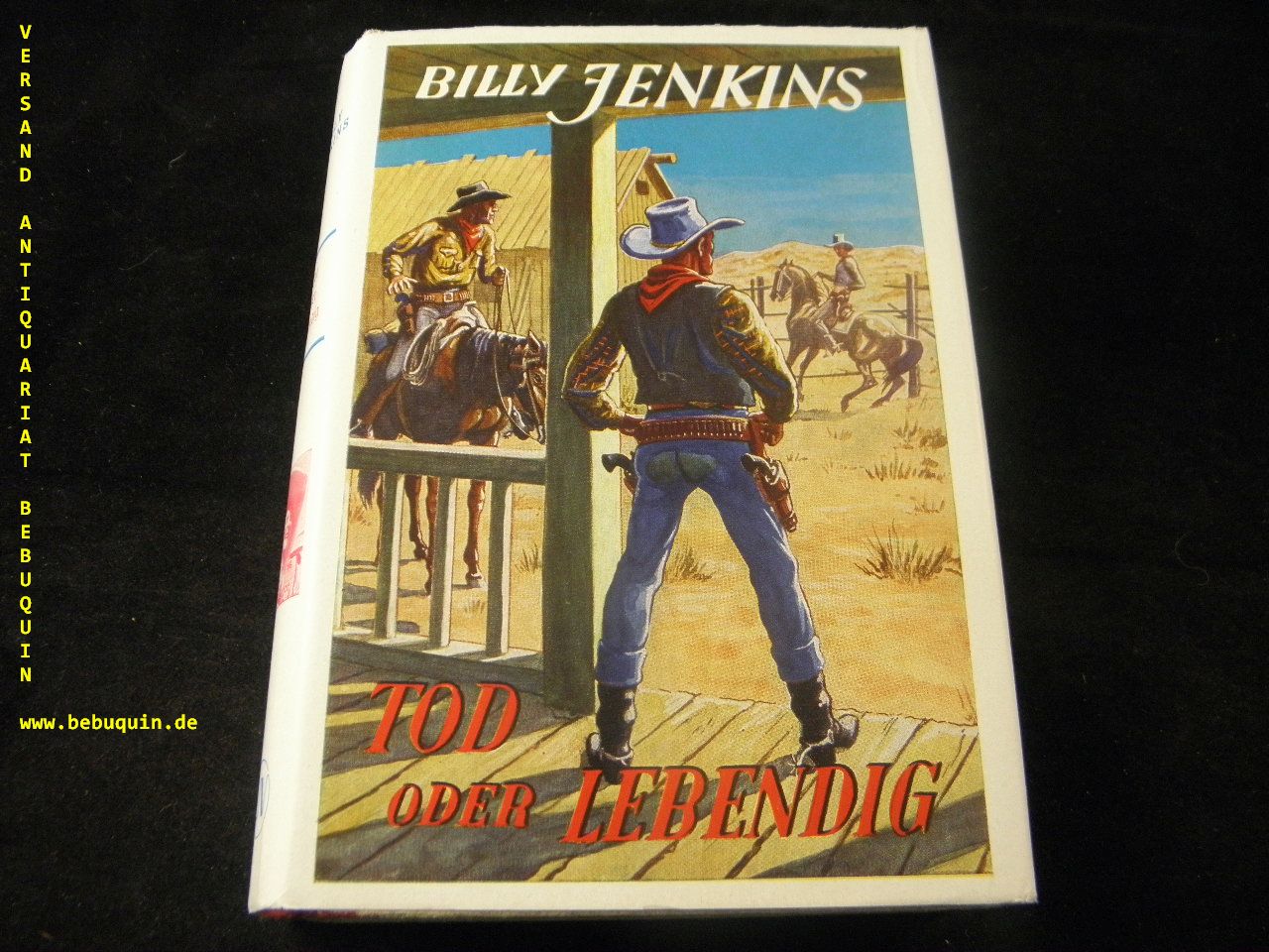 BILLY JENKINS.– CARSJENS, Gerhard: Tot oder lebendig. Sinzig (Uta), 1951. 256 S. farb. ill. OHLn. mit OUmschl. gestempeltes Leihbuch. = Billy Jenkins Wild – West – Erzählungen, Bd. 41. 1. Aufl. dieser Ausgabe.