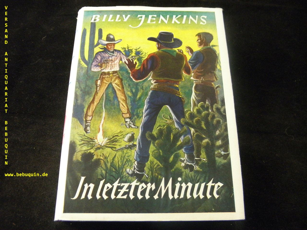 BILLY JENKINS.– MILES, Hugh: In letzter Minute. Sinzig (Uta), 1950. 272 S. farb. ill. OHLn. mit OUmschl. schönes Ex. = Billy Jenkins Wild – West – Erzählungen, Bd. 20. 1. Aufl. dieser Ausgabe.