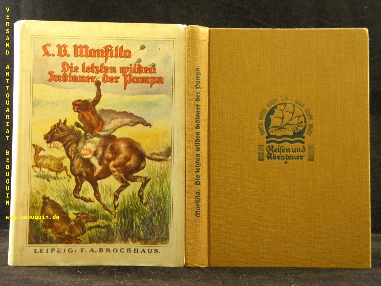 ARGENTINIEN.– MANSILLA, L.V.: Die letzten wilden Indianer der Pampa. Leipzig (Brockhaus), 1926. 160 S. mit zahlr. TZextabb. von E. Kienmeyer + 12 Bildtafeln. ill. OLn mit OUmschl. gutes Ex. = Reisen und Abenteuer 31. dt. EA.