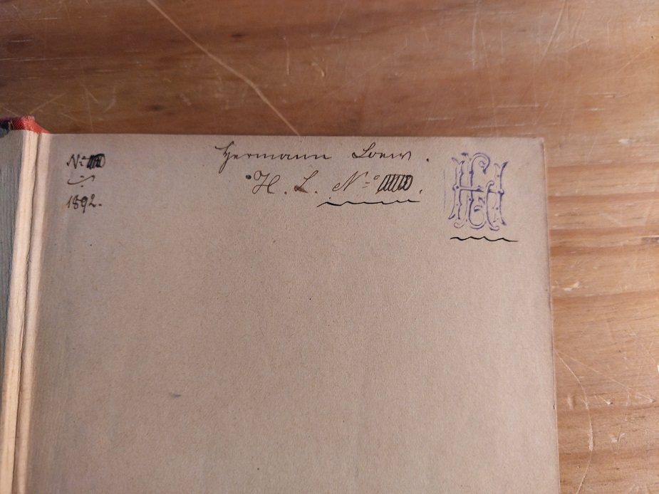 LÖNS.– ELM, Hugo: Auf afrikanischem Karawanen- und Kriegspfad Zwei Erzählungen für die reifere Jugend. Reutlingen (Bardtenschlager), (1891). 149 (3) S. mit 4 Farbendruckbildern. farb. ill. OHLn. kaum bestaubt. EA. Klotz1253/3. Mit einem eigenhändigen voll signierten Besitzervermerk sowie einem eigenhändig gemalten Ex libris des deutschen Heidedichters Hermann Löns. Museal!