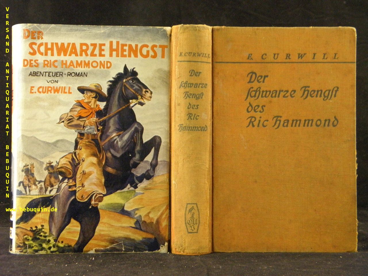 CURWILL, E.: Der schwarze Hengst des Ric Hammond. Abenteuerroman. Berlin (Uhlmann), 1934. 302 S. OLn. mit OUmschl. Einband stärker bestaubt, NaV. = Uhlmann – Bücher. seltene EA.