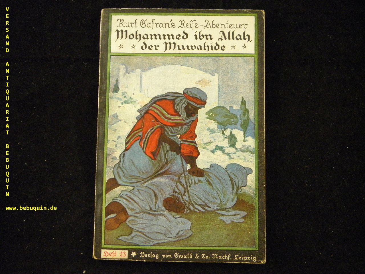 GAFRAN, Kurt: (d.i. Kurt von Gagern) Die Geißel der Völker. Mohammed ibn Allah, der Muwahide. Leipzig (Ewald), (1923). 75 (5) S. farb. ill. OKart von Fritz Baumgarten. gutes Ex. = Reise-Abenteuer, Heft 23. EA Klotz 1771/6.