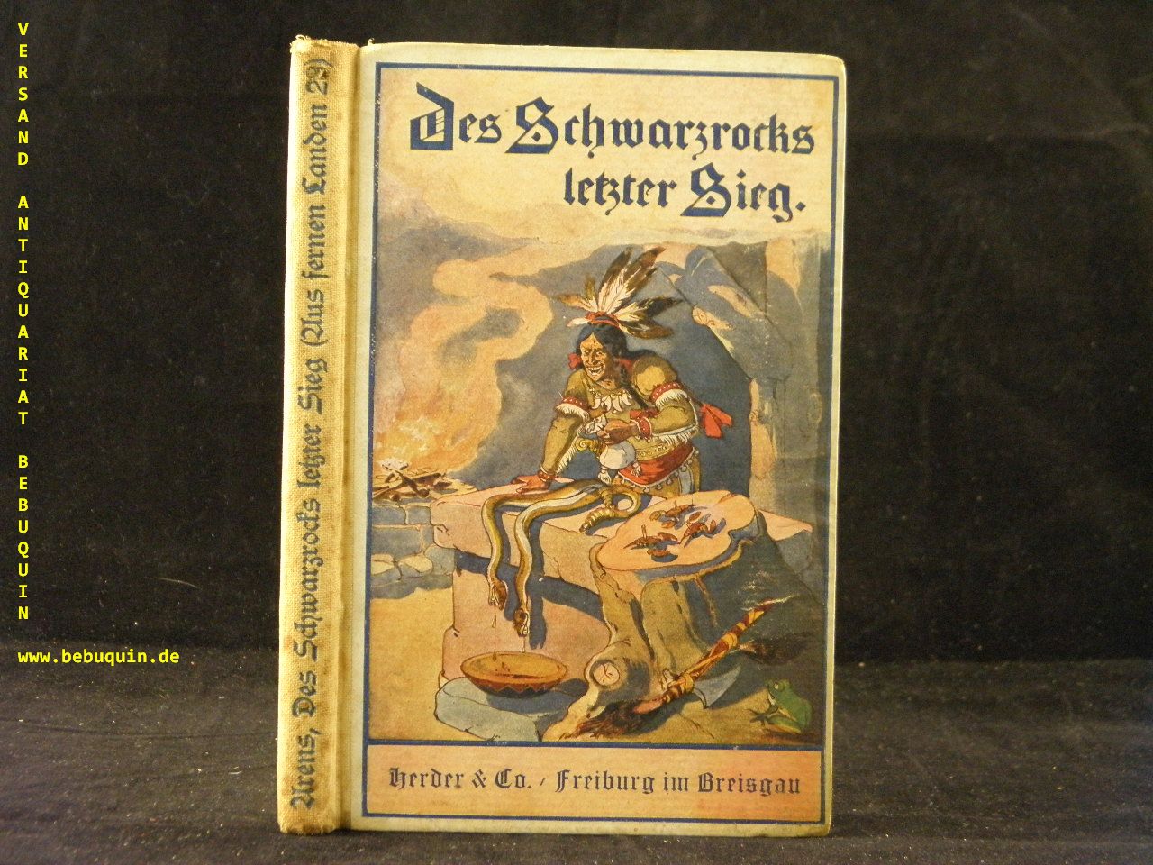 ARENS, Bernard: Des Schwarzrocks letzter Sieg. Eine Erzählung aus der großen Missionszeit unter den Huronen und Irokesen Nordamerikas. 18.– 22. Tsd., Freiburgh (Herder), 1926. kl. 8°. 99 S. mit 6 Bildern. farb. ill. OHLn. etwas gebräunt und fingerfleckig. Klotz 138/1.