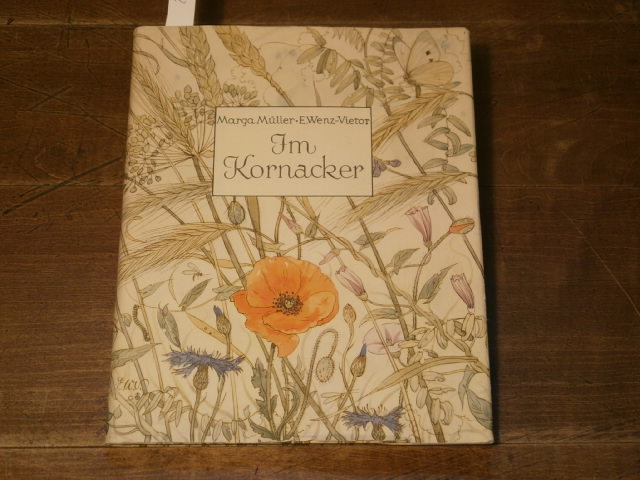 WENZ-VIETOR.– MÜLLER, Marga: Im Kornacker. Wahre Stadtgeschichten aus den Getreidegassen. München (Josef Müller), 1941. 70 S., 2 Bl. mit 6 ganzseitigen farb. Bildern von Else Wenz-Vietor. farb. ill. OPb. mit OUmschl. wie neu EA. Reetz 120.