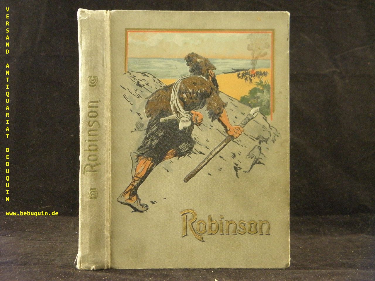 CAMPE, Joachim Heinrich: Robinson. Eine Lesebuch für Kinder. 25. Aufl. Stuttgart (Loewe), ca ca 1905. 4°. 164 S. mit 6 Farbdruckbildern von C. Offterdinger + 19 Textabb. von W. Zweigle. farb. ill. OLn. Einband etwas angeschmutzt, Gelenke gelockert. Klotz 827/27; Wegehaupt 488.