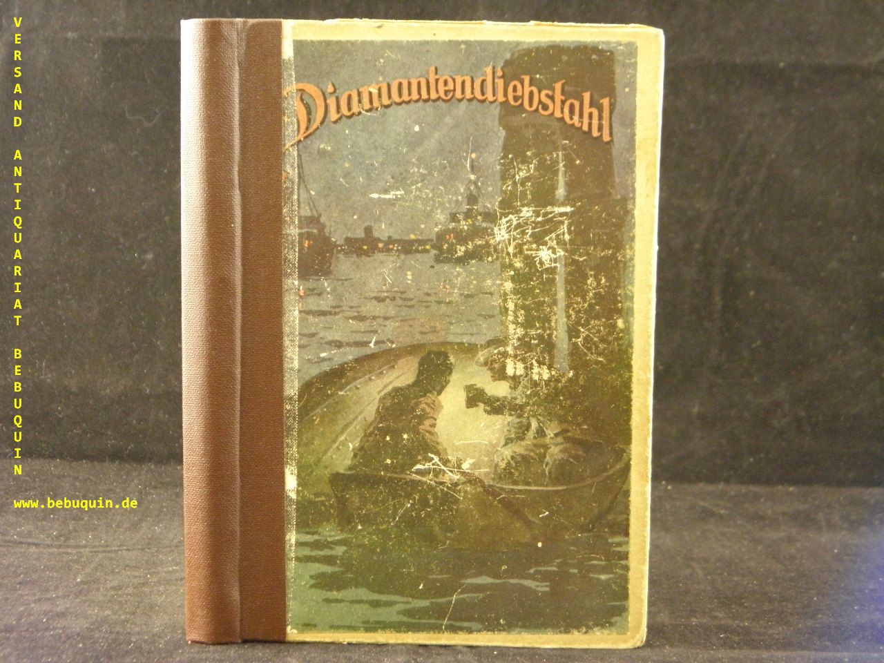 ELJENS, Olaf: Das Rätsel des Diamantendiebstahls. Reiseerzählung. Diessen (Huber), 1922. kl. 8°. 195 (1) S. mit 3 Bildtafel. farb. ill. OPb. mit neuem Rücken. Einband mit Kratzspuren, etwas gelockert. seltene EA. nicht bei Klotz, nicht bei Schädel.