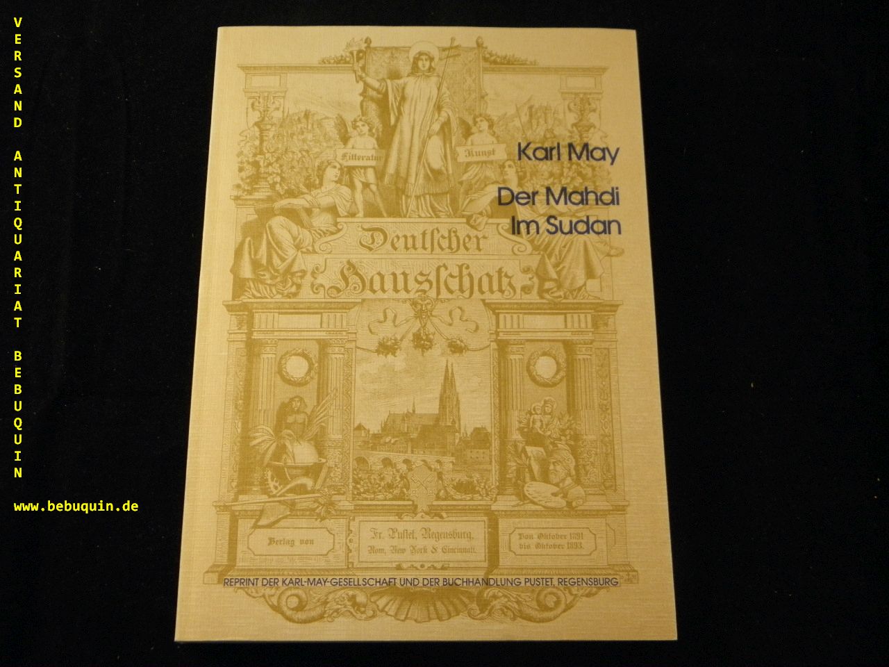 MAY, Karl: Der Mahdi – Im Sudan. Einleitung von Walther Ilmer. Bamberg (Karl May), (1981). 4°. 411 S. mit Abb. ill. OKart in OSchuber. tadelos. = Reprint der Karl-May-Gesellschaft und der Buchhandlung Pustet, Regensburg. 1. Aufl. dieser Ausgabe.