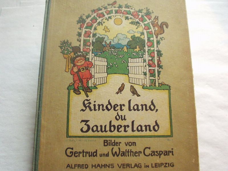 CASPARI, Gertrud + Walther: Kinderland du Zauberland. Schöne Kinderlieder aus neuer und neuester Zeit. 12. Aufl. Leipzig (Hahn / Sell), (1922). 4°. 32 S. mit farb. Bildern von Gertrud und Walther Caspari. farb. ill. OHLn. Gelenke gelockert, Kanten leicht berieben, Papier fingerspurig und gebräunt, insgesamt noch gut erhalten. Neubert 8.1.12.
