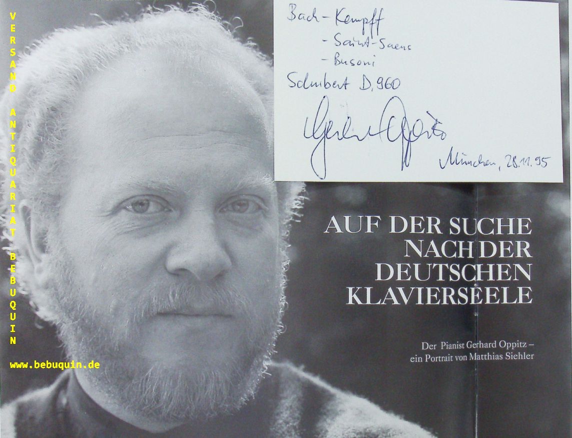 OPPITZ, Gerhard (Pianist): eigenhändig signierte und datierte Autogrammkarte. München (Philharmonie), 28.11.1995. 8 x 12,5 cm. Karteikarten in Programmheft. 12 S. mit zahlr. Abb. OKart. tadellos = Winderstein Konzerte. Gerhard Oppitz (* 5. Februar 1953 in Frauenau/Bayern) ist ein deutscher Pianist. Er setzt sich auch für zeitgenössische Komponisten wie Lutoslawski, Ligeti, Messiaen, Henze, Veerhoff, Sauter und Boulez ein. (Wikipedia)