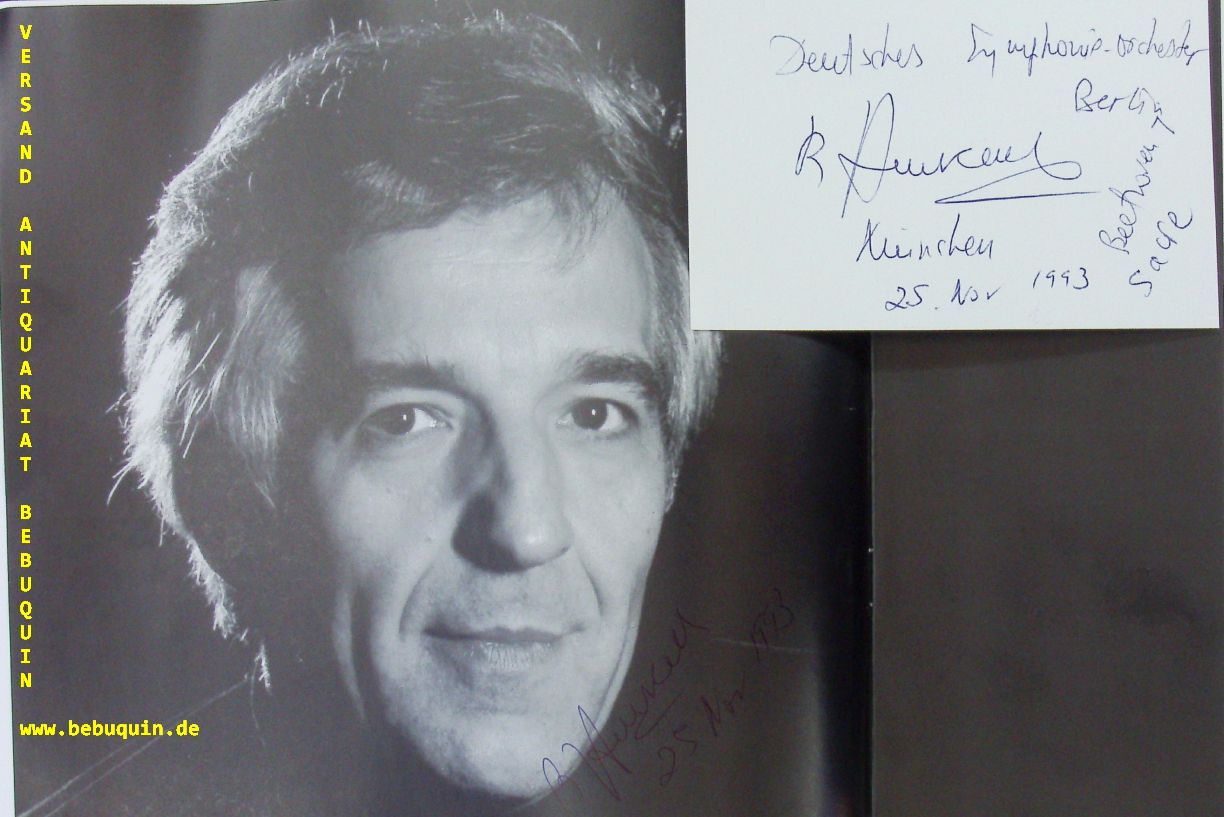 ASHKENAZY, Vladimir (Dirigent): eigenhändig signierte und datierte Autogrammkarte. Mit dem Deustchen Symphonie Orchester Berlin. München (Philharmonie), 25.11.1993. 8 x 12,5 cm. Karteikarte in Programmheft. Zusätzlich auf Portraitbild eigenhändig signiert und datiert. 16 S. mit zahlr. Abb. OKart. leicht gewellt. = Winderstein Konzerte. Wladimir Dawidowitsch Aschkenasi (* 6. Juli 1937 in Gorki, Sowjetunion) ist ein russischer Pianist und Dirigent mit isländischer Staatsbürgerschaft ab 1972. Seit 1978 lebt er in Meggen LU, Schweiz. (Wikipedia)