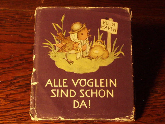 BOHATTA-MORPURGO, Ida: Alle Vöglein sind schon da! München (Josef Müller), ca 1950. 12°. 9 Bl. mit 8 farb. Bildtafeln. farb. ill. OPb. mit dem seltenen OUmschl. Umschlag lädiert.