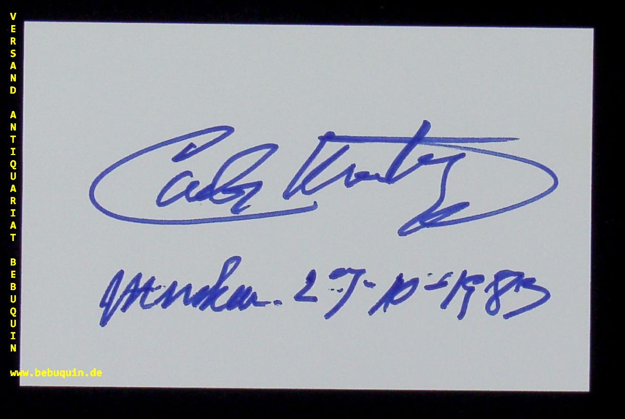MONTOYA, Carlos (Gitarre): eigenhändig signierte und datierte Autogrammkarte. München (Marienplatz), 27.11.1983. 8 x 12,5 cm. Karteikarte mit Programmausschnitt. Carlos Montoya (* 13. Dezember 1903 in Madrid; † 3. März 1993 in Wainscott, New York) war ein spanischer Flamenco-Gitarrist. (Wikipedia)
