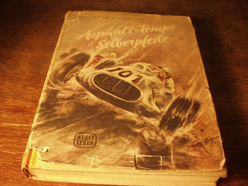 AUTO.– RACKWITZ, Erich + OLIVA, Hans: Asphalt Tempo Silberpfeile. Berlin (Neues Leben), 1953. 229 S. mit Bildtafeln von Willi Beyer. ill. OHLn mit OUmschl. Umschlag etwasm lädiert. EA.