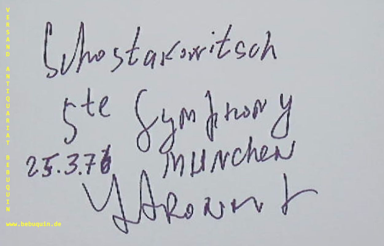 AHRONOVISCH, Yuri (Dirigent): eigenhändig signierte und datierte Autogrammkarte. München (Philharmonie), 25.3.1976. 8 x 12,5 cm. Karteikarte. Juri Michailowitsch Aronowitsch (* 13. Mai 1932 in Leningrad; † 31. Oktober 2002 in Köln) war ein israelischer Dirigent russischer Herkunft. (Wikipedia)