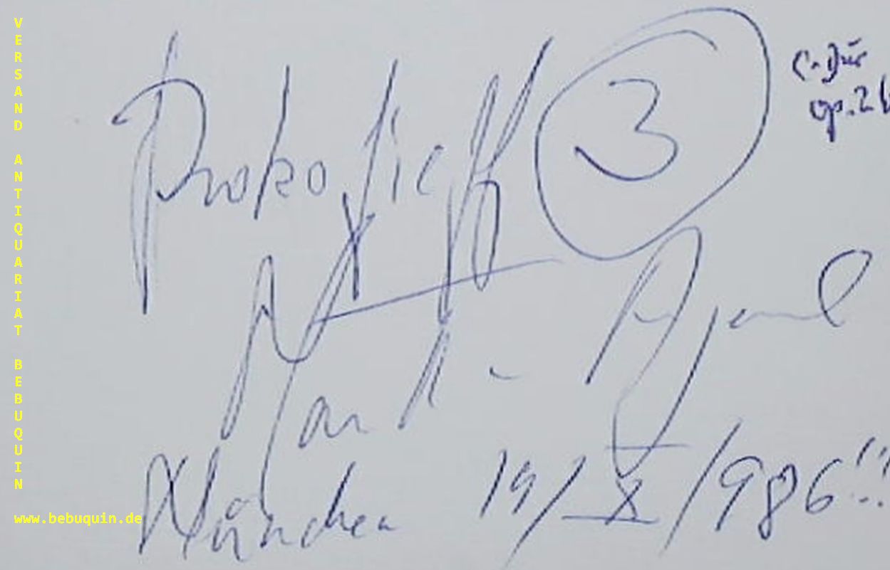ARGERICH, Martha (Pianistin): eigenhändig signierte und datierte Autogrammkarte. Prokofieff 3. München (Herkulessaal), 19.10.986 (!). 8 x 12,5 cm. Karteikarte. Martha Argerich (* 5. Juni 1941 in Buenos Aires) ist eine argentinisch-schweizerische Pianistin. Im Jahr 2005 erhielt sie die Auszeichnung Praemium Imperiale, den „Nobelpreis der Künste“. Im Jahr 2014 wurde sie mit dem ECHO Klassik in der Kategorie „Konzerteinspielung des Jahres (Klavier)“ mit dem Orchestra Mozart Bologna unter Claudio Abbado für Mozarts Klavierkonzerte 20 & 25 ausgezeichnet. 2016 erhielt sie den Kennedy-Preis. (Wikipedia)