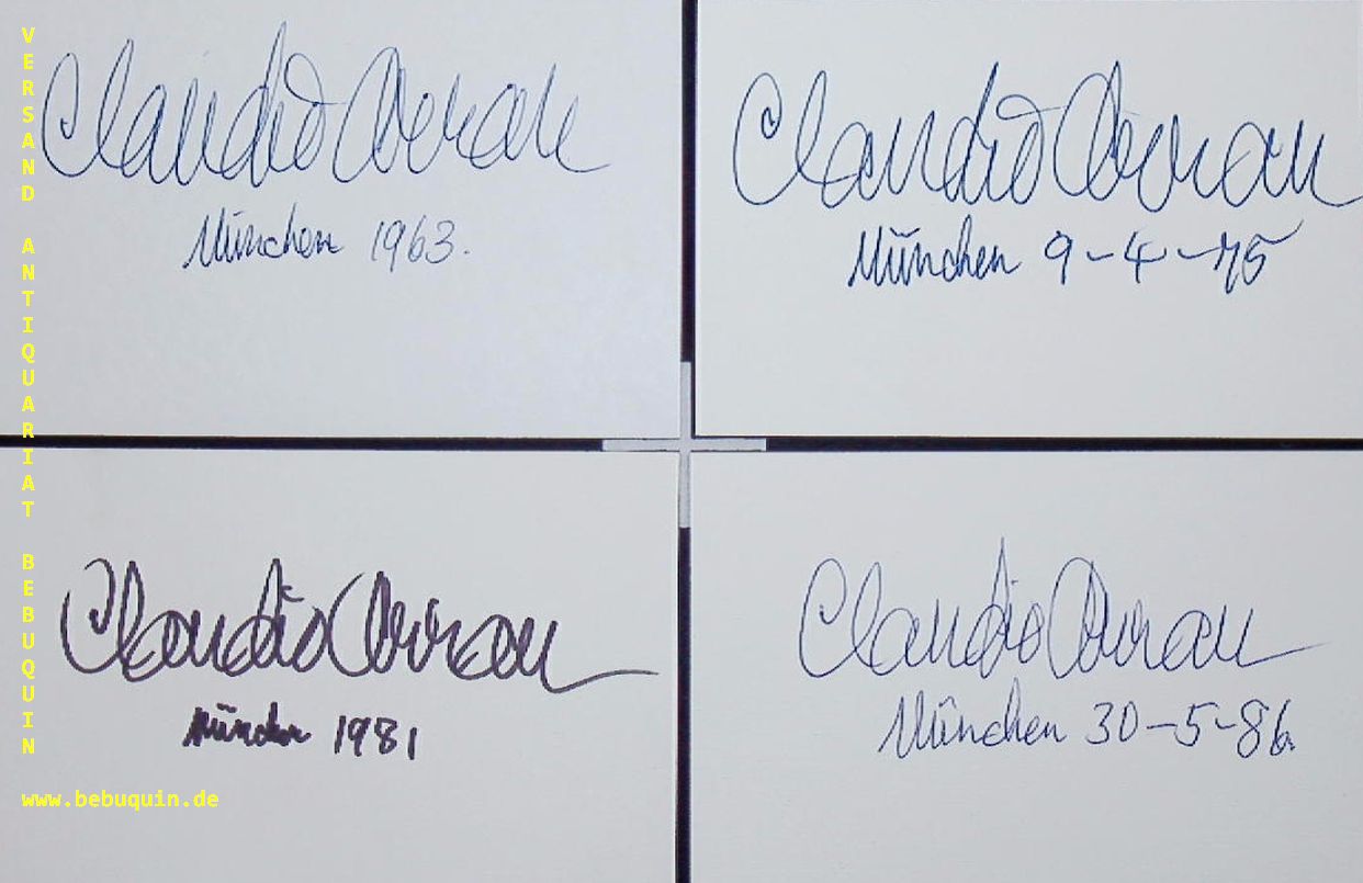 ARRAU, Claudio (Pianist): 6 eigenhändig signierte und datierte Autogrammkarten. München (Kongresssaal), 1963 – 1986. 8 x 12,5 cm. 6 Karteikarten. Claudio Arrau León (* 6. Februar 1903 in Chillán, Chile; † 9. Juni 1991 in Mürzzuschlag, Österreich) war ein chilenischer Pianist. (Wikipedia)