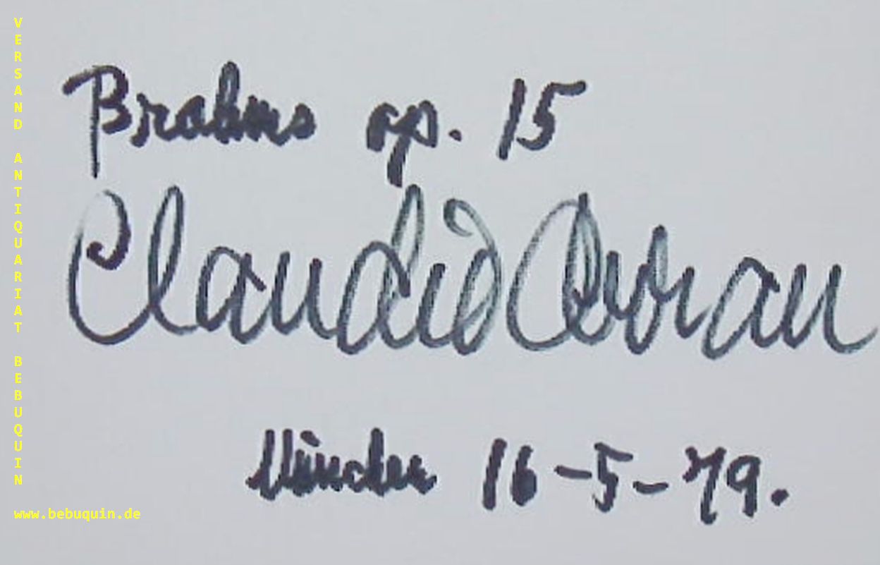 ARRAU, eigenhändig signierte und datierte Autogrammkarte: Brahms op. 15.