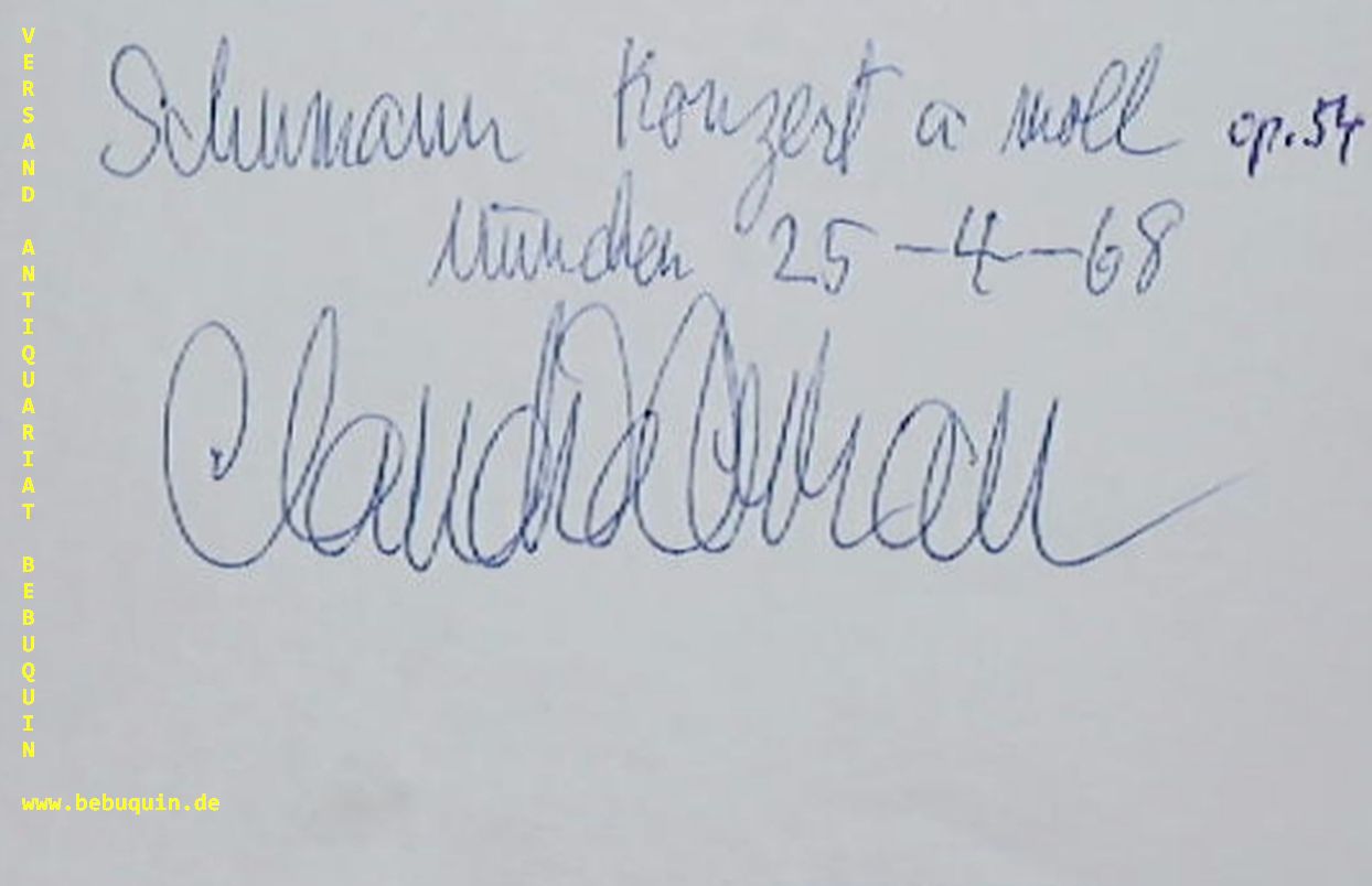ARRAU, eigenhändig signierte und datierte Autogrammkarte: Schumann Konzert a mo