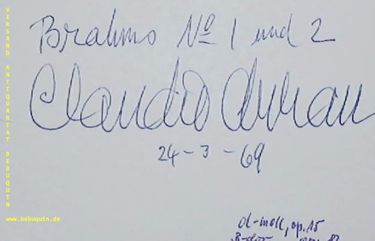 ARRAU, eigenhändig signierte und datierte Autogrammkarte: Brahms No 1 und 2.