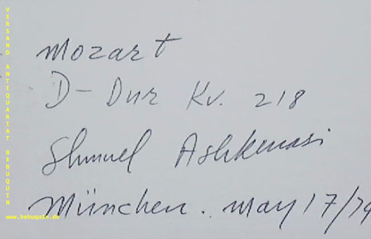 ASHKENAZI, Shmuel (Violonist): eigenhändig mit komplettem Vornamen signierte und datierte Autogrammkarte. Mozart D-Dur KV 218. München (Philharmonie), 7. 5.1974. 8 x 10,5 cm. Karteikarte. Shmuel Ashkenasi (* 11. Januar 1941 in Tel Aviv) ist ein israelischer Violinist und Lehrer. (Wikipedia)