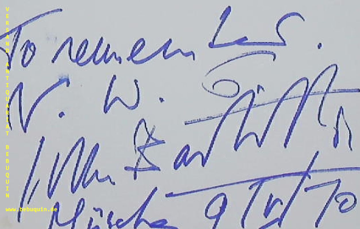 BARBIROLLI, Sir John (Cellist, Dirigent): eigenhändig signierte und datierte Autogrammkarte „To remember N.W.G.“ (?) München (Kongresssaal), 9.5.1970. 8 x 12,5 cm. Karteikarte. Autogrammdatum 2 Monate vor seinem Tod. Sir John (Giovanni Battista) Barbirolli (* 2. Dezember 1899 in London; † 29. Juli 1970 ebenda) brit. Dirigent, u.a. 1937-43 Chefdirigent des New York Philharmonic Orchestra als Nachfolger A. Toscaninis, Chefdirigent des Hallé Orchesters 1943-70. (Wikipedia)