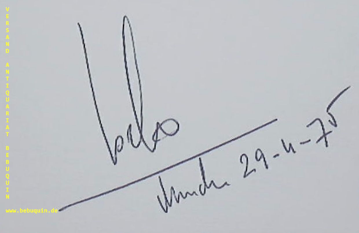 BEHREND, Siegfried (Gitarrist): eigenhändig signierte und datierte Autogrammkarte. München (Philharmonie), 29.4.1975. 8 x 12,5 cm. Karteikarte. Siegfried Behrend (* 19. November 1933 in Berlin; † 20. September 1990 in Hausham) war ein deutscher Gitarrist und Komponist sowie Herausgeber von Gitarrenmusik. Siegfried Behrend erhielt 1981 auf Vorschlag Franz Josef Strauß’ das Verdienstkreuz am Bande des Verdienstordens der Bundesrepublik Deutschland. (Wikipedia)