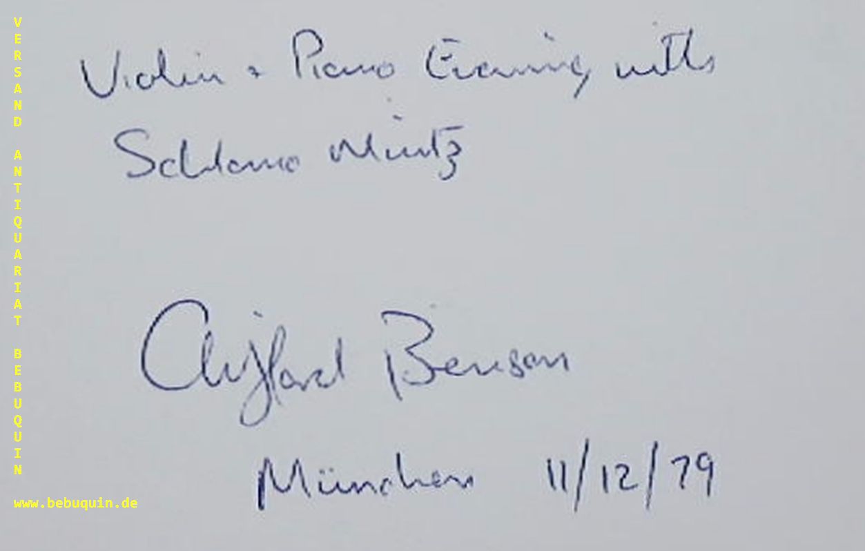 BENSON, Clifford (Pianist): eigenhändig signierte und datierte Autogrammkarte: Violin & Piano Evening with Schlomo Mintz. München (Philharmonie), 11.12.1979. 8 x 12,5 cm. Karteikarte. Clifford George Benson, pianist, born November 17 1946; died August 10 2007.
