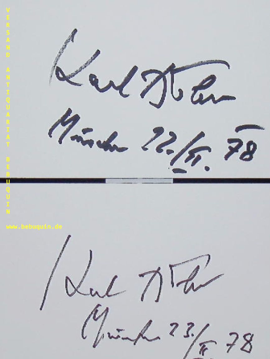 BÖHM, Karl (Dirigent): 2 eigenhändig signierte und datierte Autogrammkarten. München (Philharmonie), 22./23.2.1978. 8 x 12,5 cm. 2 Karteikarten. Karl August Leopold Böhm (* 28. August 1894 in Graz, Österreich-Ungarn; † 14. August 1981 in Salzburg) war ein österreichischer und deutscher Dirigent. Seine Dirigentenkarriere begann 1917 in seiner Heimatstadt Graz. Mit der Unterstützung von Bruno Walter berief man ihn 1921 nach München. 1927 wurde er Generalmusikdirektor in Darmstadt, ab 1931 in derselben Funktion in Hamburg. 1934 wurde er Nachfolger von Fritz Busch an der Dresdner Semperoper. Diese Stelle hatte er bis 1943 inne, als er das erste Mal Direktor der Wiener Staatsoper wurde.[1] In der Endphase des Zweiten Weltkriegs wurde er im August 1944 in die von Adolf Hitler genehmigte Gottbegnadeten-Liste der wichtigsten Dirigenten aufgenommen, was ihn vor einem Kriegseinsatz, auch an der Heimatfront, bewahrte. (Wikipedia)