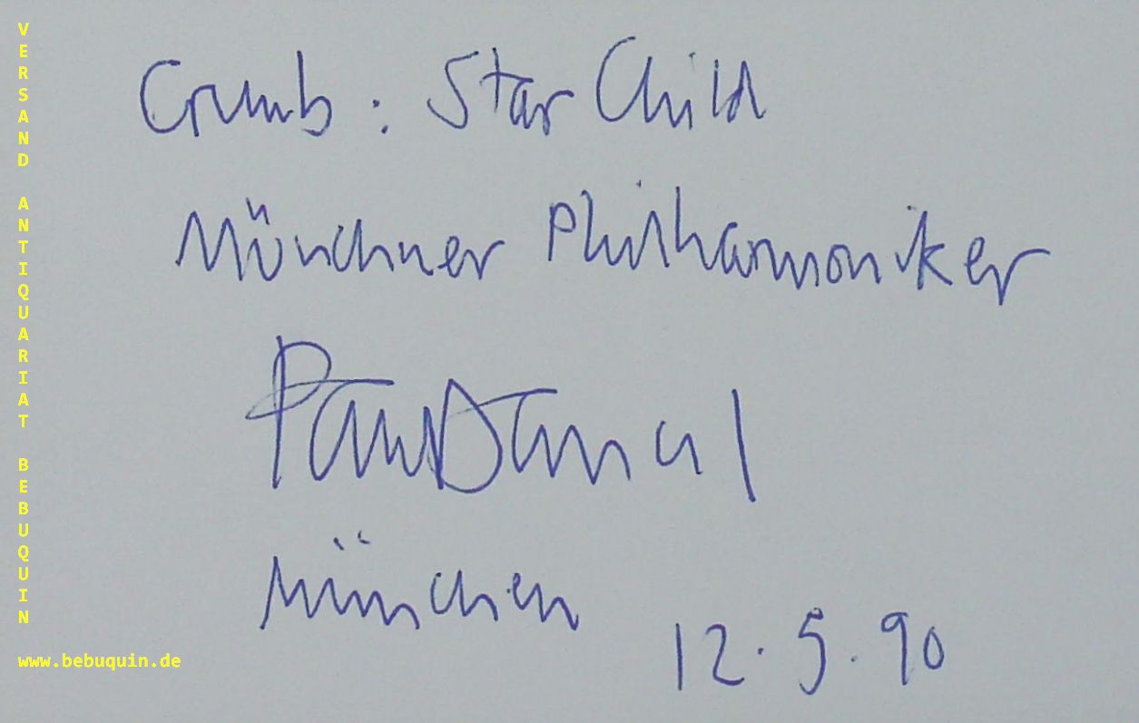 DANIEL, Paul (Dirigent): eigenhändig signierte und datierte Autogrammkarte: Crumb: Star Child. München u.a., 12.5.1990. 8 x 12,5 cm. Karteikarten. Paul Daniel (born 5 July 1958) is an English conductor. (Wikipedia)