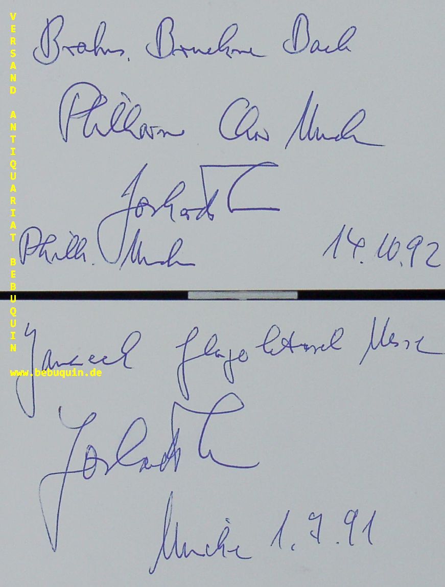 DAUS, Joshard (Dirigent): 2 eigenhändig signierte und datierte Autogrammkarten. München 1.7.1991 + 14.10.1992. 8 x 12,5 cm. 2 Karteikarten. Joshard Daus (* 1947 in Hamburg) ist ein deutscher Chorleiter und Dirigent. (Wikipedia)