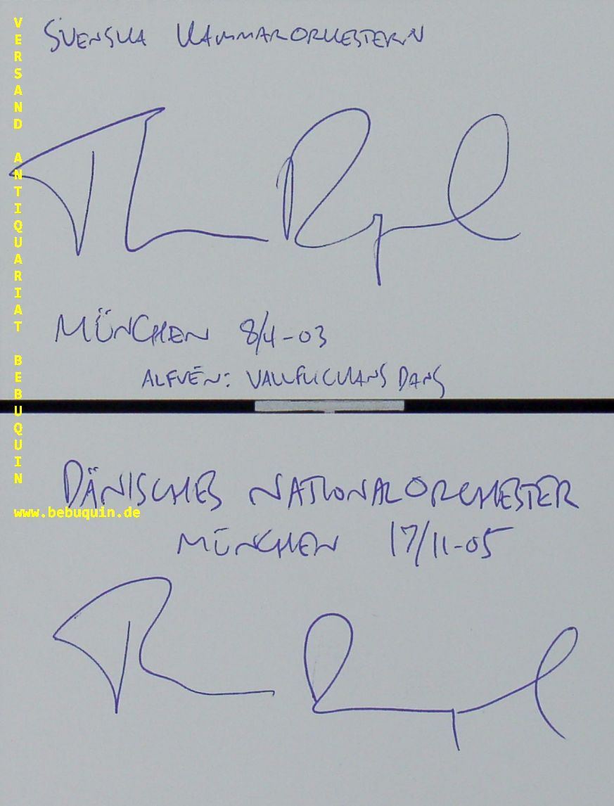 DAUSGAARD, Thomas (Dirigent): 2 eigenhändig signierte und datierte Autogrammkarten. München 8.4.2003 + 17.11.2005. 8 x 12,5 cm. 2 Karteikarten. Thomas Dausgaard (* 4. Juli 1963 in Kopenhagen) ist ein dänischer Dirigent. (Wikipedia)