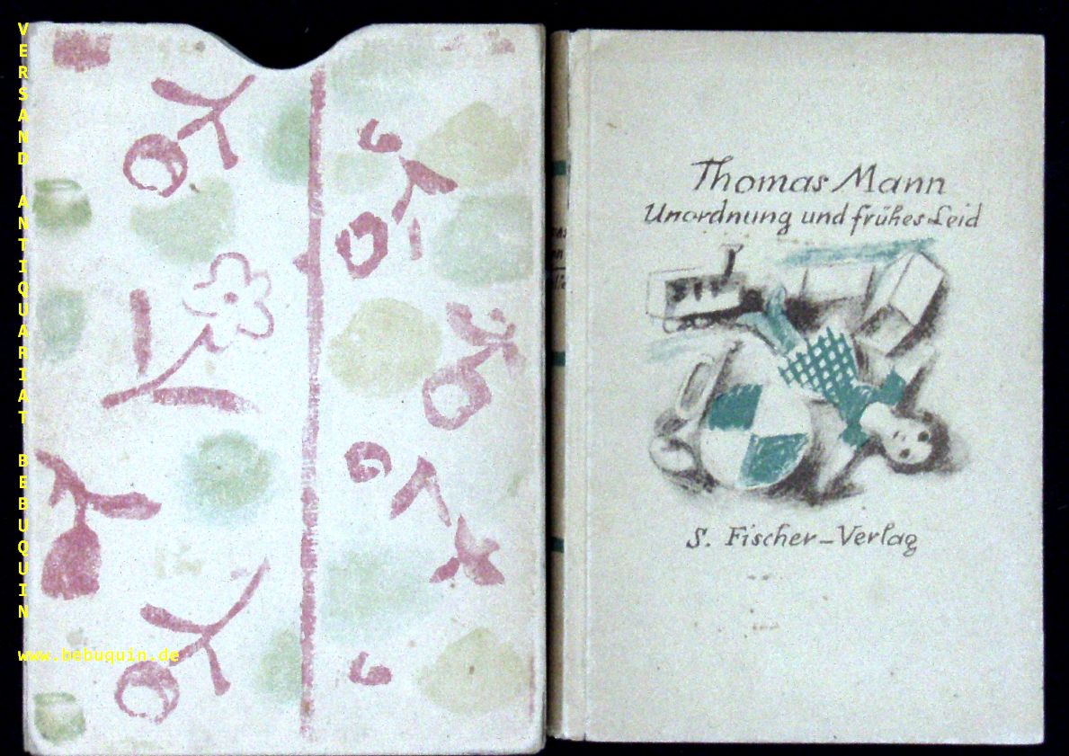 MANN, Thomas: Unordnung und frühes Leid. Novelle. Berlin (Fischer), 1926. kl. 8°. 127 S. mit Titelbild nach Entwurf von Karl Walser. OPb. mit farb. Einbandzeichnung von Karl Walser in Pappschuber mit farb. ornamental gestalteten Vorsätzen von Karl Walser, kaum gebräunt, gutes Ex.
