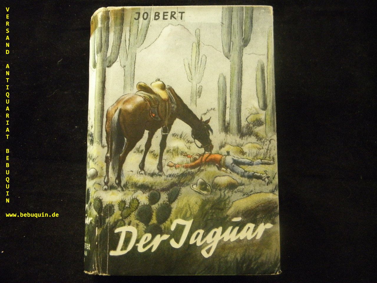 BERT, Jo: Der Jaguar. Bremen (Burmester), ca 1938. 272 S. ill. OLn. mit OUmschl. Umschlag am oberen Kap mit Tesa repariert, gutes Ex. = Burmester’s Abenteuer-Serie. EA.